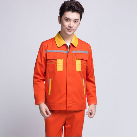 苏州鹰诺服装:深蓝配桔红春秋工作服AC069