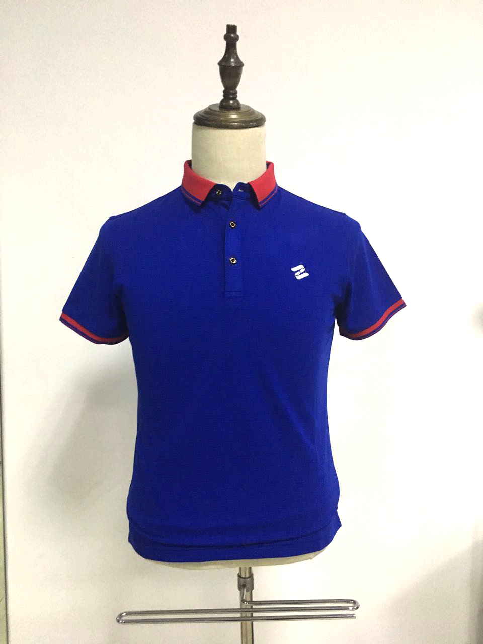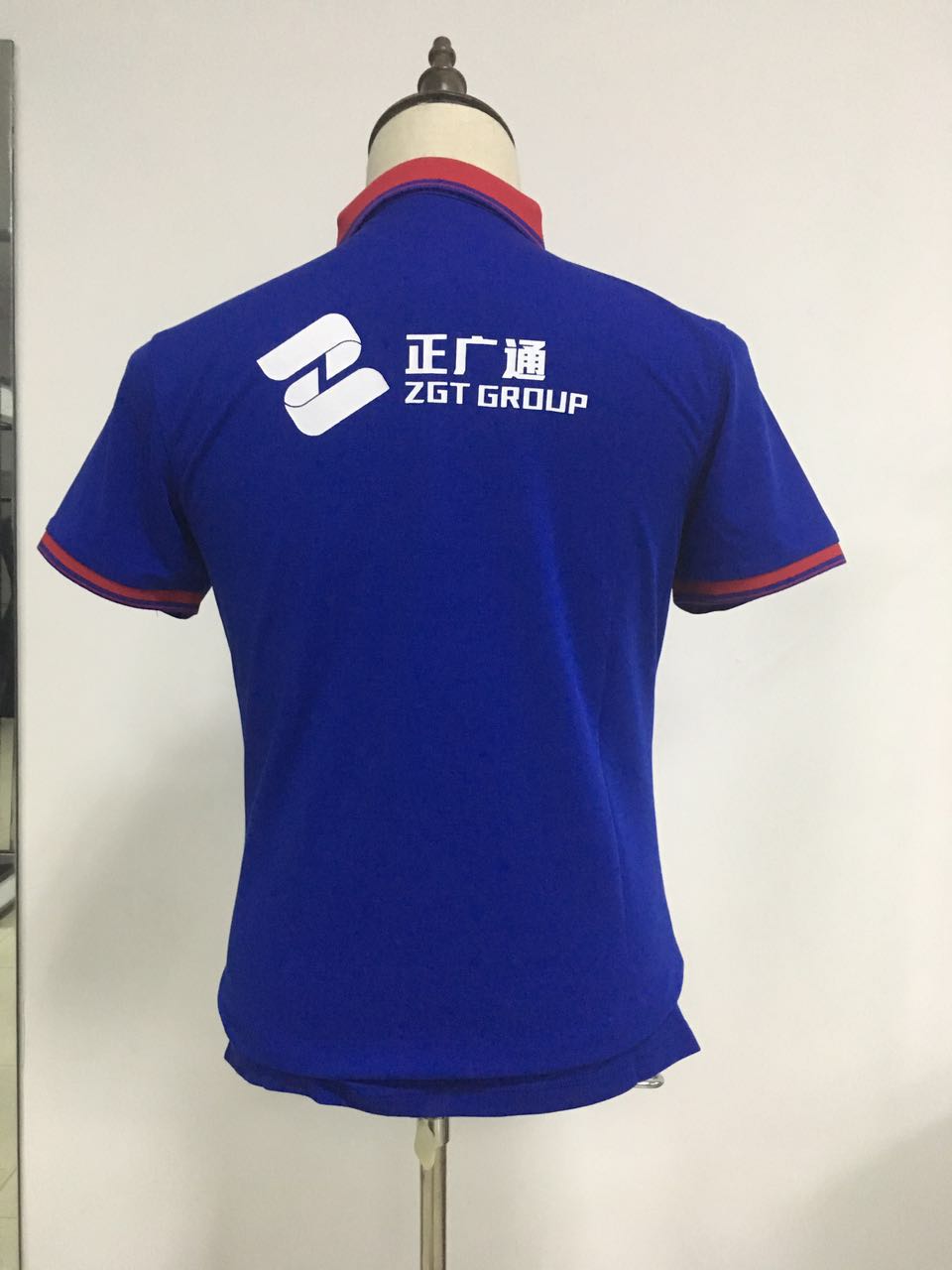 夏季T恤衫除了材质要非常凉爽透气外,其穿着的版型也是非常重要的。夏季T恤衫的版型最重要的地方在于领子,袖子和下摆处。此三处地方是稳固其版型的最重要地方。我司为正广通定染了红色部分。根据其公司主色大红色来定制的。目前款式已确定。批量夏季T恤衫也在生产中。