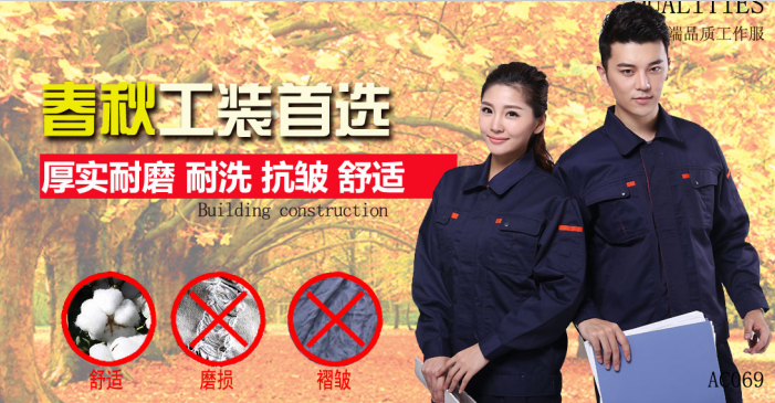 2,春秋首选工作服AC071,厚实耐磨,耐洗抗皱,包边包缝工艺,抗撕裂强度高。