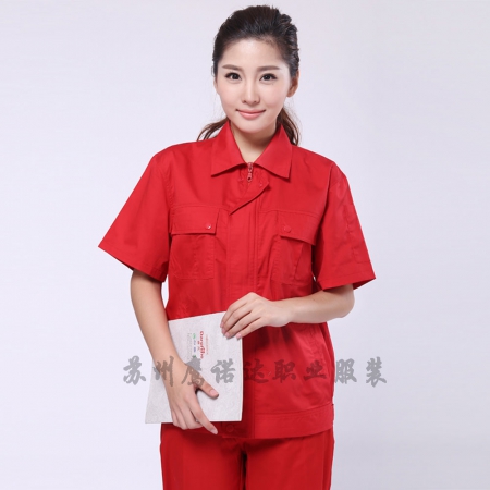 苏州鹰诺服装:藏青拼大红夏季工作服AD103