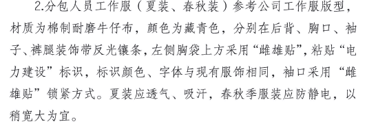 一:上海电力工程工作服要求: