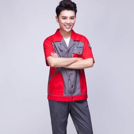 银灰拼红色夏季工作服AD064-XJ