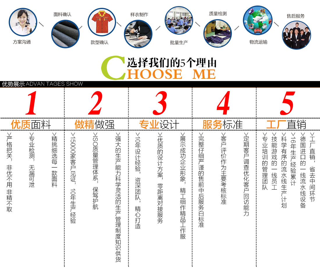 - 通过和业务人员的沟通,觉得鹰诺达是个做事的厂家,就把900多套工装单交给他们定做,后期的大货成品证实我的选择他们没有错!!给自己赞一个!!也给鹰诺达赞一个!!