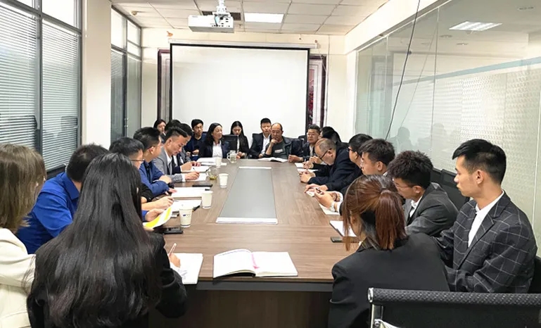 5月12日上午,永业行助理总裁雷小明一行赴青海分部交流指导工作,青海分部总经理余国林及分部员工参加座谈。