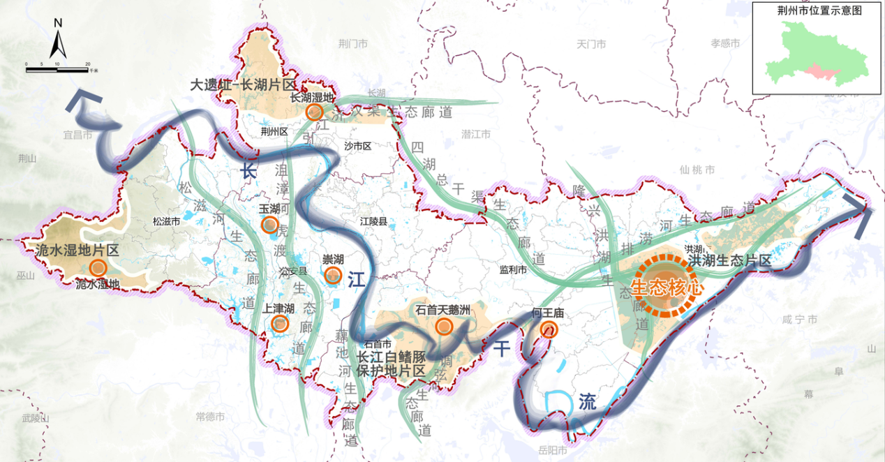 《荆州市国土空间生态修复规划(2021-2035年)》(以下简称《规划》)是《荆州市国土空间总体规划(2021-2035年)》的重要专项规划,是对《湖北省国土空间生态修复规划(2021-2035年)》的进一步落实和传导。《规划》积极践行习近平生态文明理念,全面梳理全市生态资源本底及问题,科学确立国土空间生态修复目标,构建市域生态修复格局,划分国土空间生态修复分区,提出国土空间生态修复重点区域并部署重点工程,从生态系统整体性和流域系统性出发,筑牢生态安全格局,支撑荆州市经济社会绿色高质量、科学永业行。
