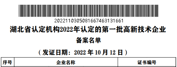 近日,全国高新技术企业认定管理工作领导小组办公室公布了湖北省2022年第一批国家高新技术企业备案名单,湖北永业地矿评估咨询有限公司正式通过全国高新技术企业认定管理工作领导小组办公室认定,成为国家高新技术企业,截至目前,永业行成员机构中高新技术企业已达三家。