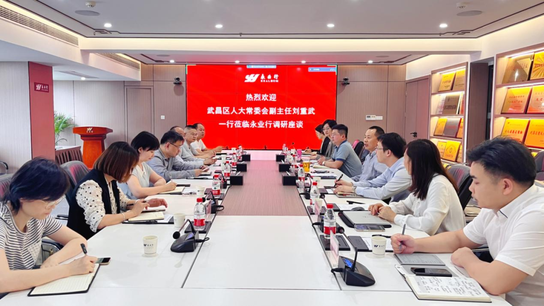 5月25日下午,武昌区人大常委会副主任刘重武一行莅临永业行考察调研,永业行党委书记、董事长潘世炳,高级副总裁文云波、副总裁雷小军热情接待并参与座谈交流。