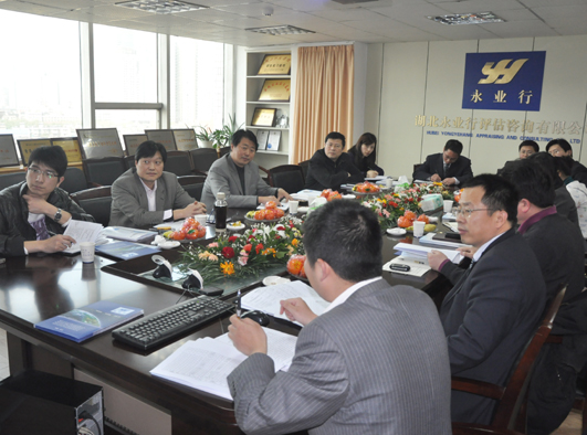 省国土资源厅土地利用处副处长陈大才、科长甘宏,市国土资源和规划局土地利用处处长金保彩、科长吴磊,武汉王家墩中央商务区投资控股集团有限公司总经理孟炜,副总经理荣巩,土地整理储备事务部军土协调专班业务主任王德顺、综合管理部部长胡星杰等参加了本次评审会。永业行总裁潘世炳,副总裁高军,武汉分部总经理雷小军、高级经理陈文、经理潘维同等也参加了会议。会上,潘世炳总裁对陈处长、金处长、孟总一行表示热烈欢迎,并向他们介绍了永业行的发展历程及现状;武汉分部高级经理陈文就中央商务区土地打包平衡报告初步结果、咨询测算思路及下一步工作计划进行了专题汇报;与会领导对永业行的发展态势和行业地位表示充分肯定,并对王家墩中央商务区土地打包平衡项目的咨询成果以及永业行专业、周到的服务表示认可。此外,与会领导针对咨询测算细节也提出了一些意见和建议。
