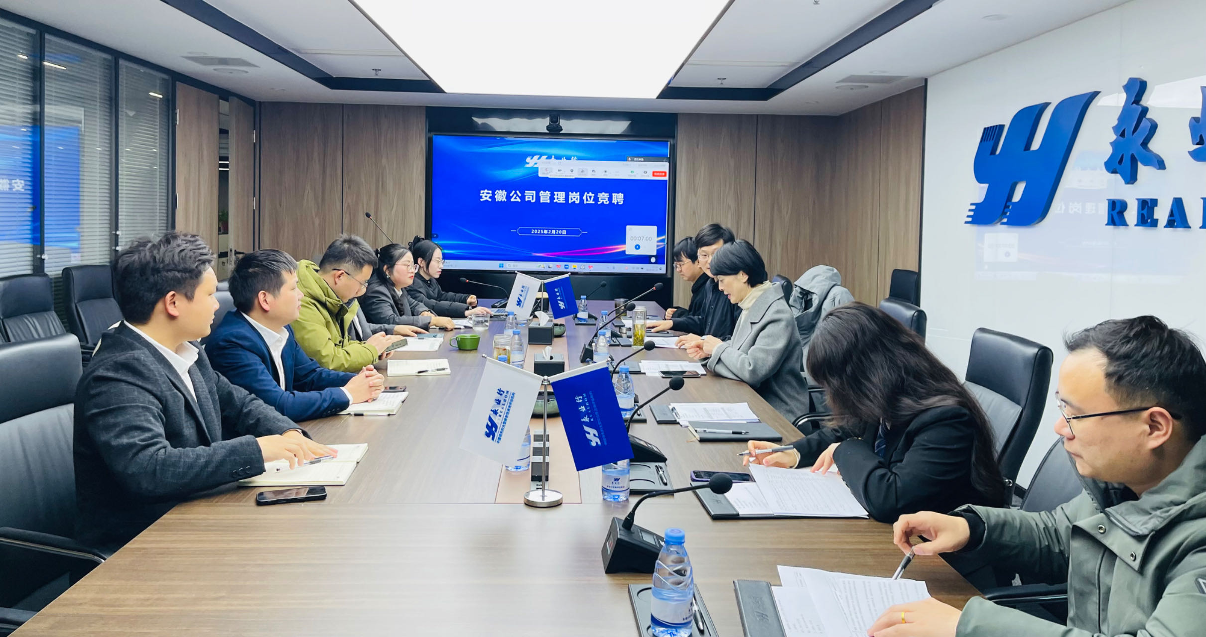 2025年2月20日,安徽公司举办业务部门总监岗位竞聘会。永业行联席总裁王琴,产业链及职能部门代表,以及分部总经理徐山柱等20余人通过线上、线下形式参会。